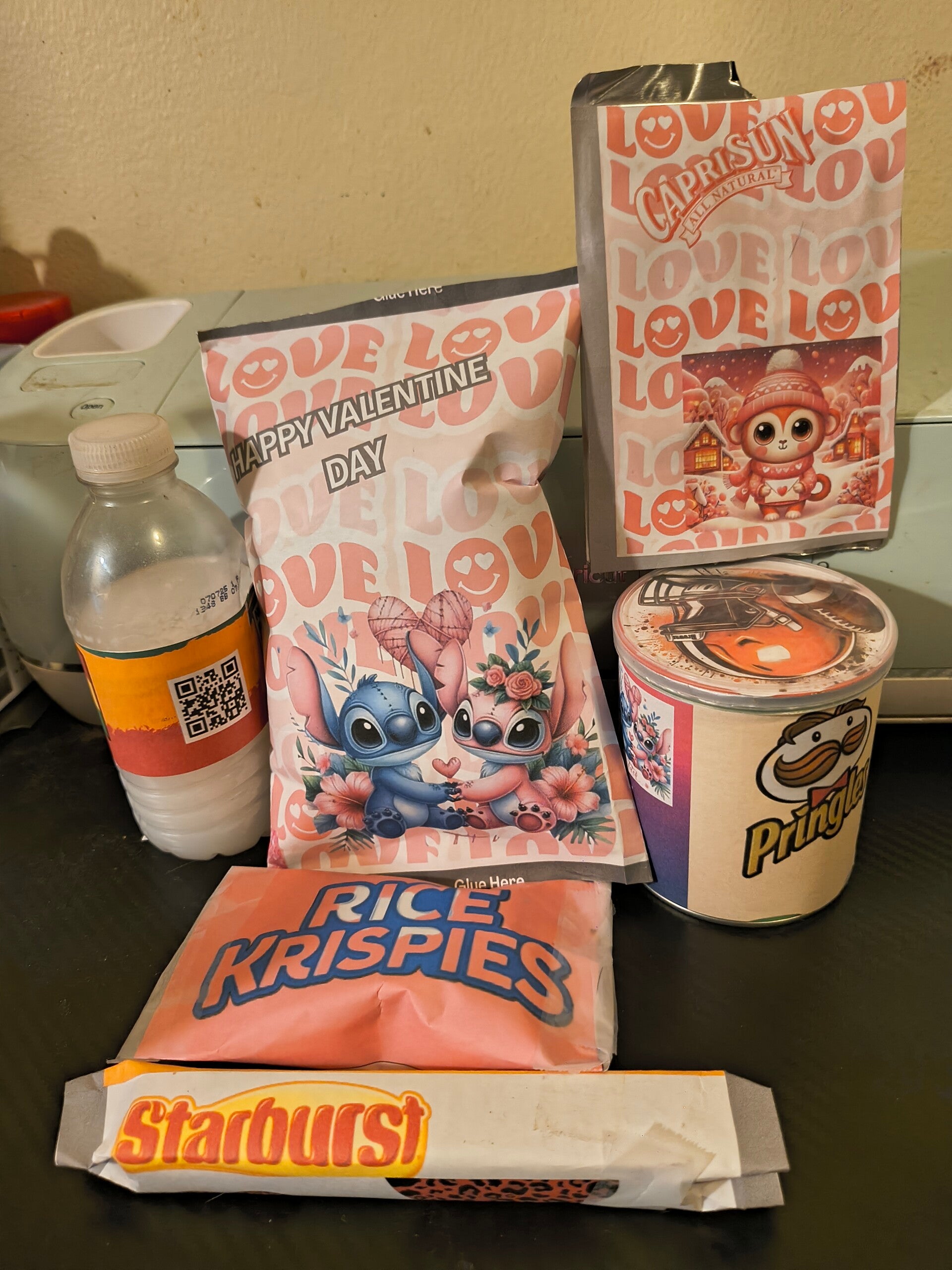 Party Favorfor Graduation, Birthday, Wedding, Anniversary Party Favors. I make the designs for you to put together or I will put them together ship to you or you can pick them up at my house. Starburst, M&m'S,Pringles, Hershey Bars, Chip Bag, Rice Krisp Treats, Oreo Cookies are 12 for 35 dollars. Water bottle we have two sizes 16.9 oz, 8 oz 20 for45 dollars, Capri sun 10 pouch for 25 dollars, Juice Box 8 for 25 dollars